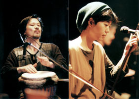 Eso (left) is a composer, lyricist and vocalist who plays the piano and various traditional musical instruments. After formal study of jazz piano, musical theory and arrangement, he became interested in traditional instruments and taught himself to play many of them. His music has been used in theatre, traditional and modern dance, television and at various shrines and temples. In 1987 he performed with his group Silent Pulse at the Montreaux Music Festival and at present he continues his international activities as a member of the Wind Travelin Band. Vocalist Ema (right) is also a composer and lyricist and plays the traditional chinese violin Er-hu and the lyre. Her distinctive vocal syle, combined with the sound of the Er-hu, creates a world of music that seems to transcend time and space. She joined the Wind Travelin Band in 1991 and performed with them in England, France, Greece and other venues. She left the band in 1996. |